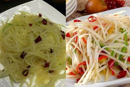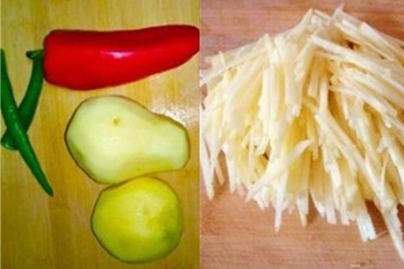 主要材料:两三个土豆、尖椒、红辣椒;配料:白醋、盐、植物油。