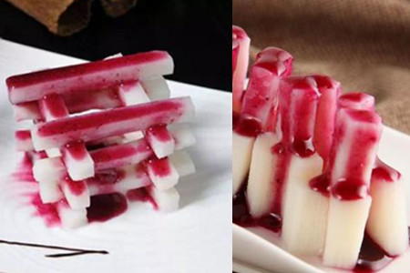 6、按个人口味淋在山药条上,即可食用。