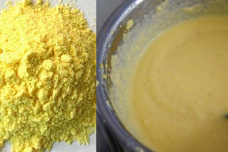 我们可以用小勺轻轻的搅拌一下,如果可以看见有许多气泡,这样刚刚好,要是忘记了,发酵时间够长,可能会有酸味,用食指捏一捏食用碱放入面糊中即可,这样能够减少性酸味。