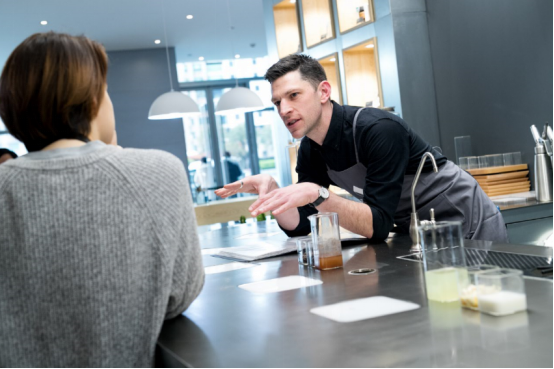 Dale Harris将分享场景选在GREYBOX COFFEE超大金属吧台,他认为最好的呈现咖啡的场景,是站在客人面前,用心注入一杯好咖啡,带领客人一同探索咖啡乐趣。而GREYBOX每家店都有的超大吧台,在设计之初,就是为客人可以看到咖啡制作的全部过程,并能在第一时间将咖啡呈给客人,让大家在最佳时间享用。