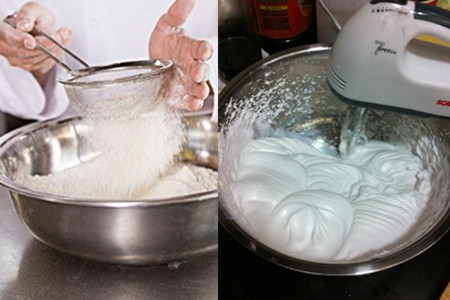2.将鸡蛋的蛋黄和蛋清分开在两个盘子里,蛋白要放在一个无油无水的干净的盘子里,在放有蛋黄的碗里面加入30克的白糖,用电动打蛋器打蛋黄和白糖,然后打到大约三分钟后,碗里的东西变成淡黄色即可。