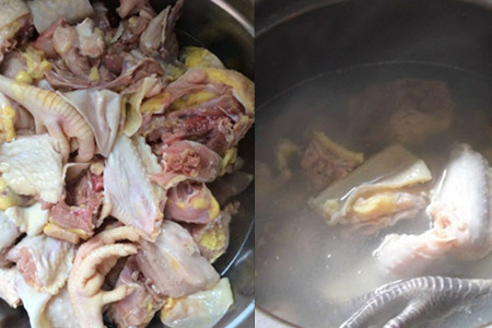 先拿一个干净的锅出来,将刚才处理好的下鸡以及其他材料都放进去,并加入能够淹没食材的清水,然后用小一点的火开始炖。