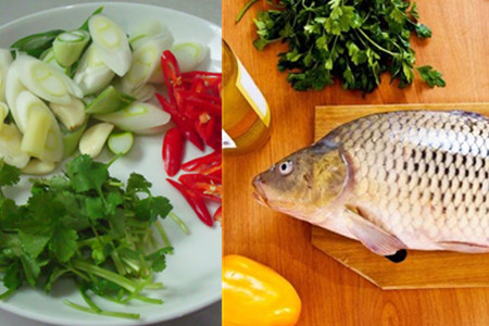 材料:新鲜的鲤鱼,花椒,八角,蒜苗,料酒,葱,干辣椒,姜,花生油,醋。