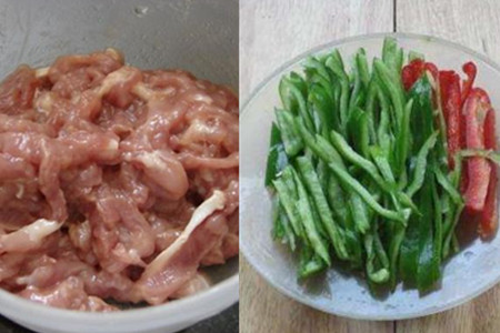 1、把你选用的肉洗干净切丝,并且用生抽和料酒拌匀腌制;