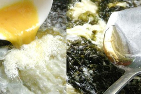 将鸡蛋打散备用,可以稍微放一点白糖来提鲜。然后将紫菜洗干净放在一旁撕碎,这两者都很容易熟。先烧开水,加入紫菜,看到紫菜差不多熟了的时候打入鸡蛋,搅拌一下。再淋一些香油和咸盐提味,这道汤就做好了。