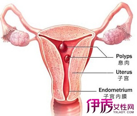 子宫息肉即宫颈息肉,是妇科常见病,是慢性宫颈炎的一种。它是因为炎症刺激使子宫颈内膜组织增生,子宫有排除异物的倾向,使增生的黏膜逐渐自基底部向宫颈外口突出而形成的息肉样改变,故也叫做宫颈内膜息肉。多属良性,少数息肉较大者,可引起少量的阴道流血,或是在性交后及蹲着用力大便时出血。当用阴道窥器暴露宫颈时,所见的息肉外形大小不等,形状不一,如水滴样,圆形,扁圆形,其表面光滑、鲜红或稍呈暗红色,有的带蒂或是蒂深入到颈管内,质地较脆,碰到时容易出血。
