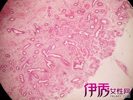 子宫内膜息肉由子宫内膜组成,表面被覆一层立方上皮或低柱状上皮。息肉中间部分形成纤维性纵轴,其内含有血管。由于蒂部狭窄,血液供应减少,息肉极易变性。最易发生息肉血管内血栓形成,因淤血而变成深紫色,常在顶端开始发生坏死,最后可能腐崩而脱落。