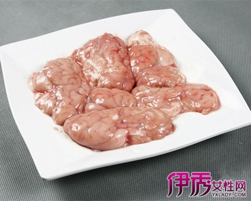 羊脑,为山羊或绵羊的脑,具有补血养血、调理肠胃、增强记忆力、开胃消食、祛风、祛斑、养颜、抗衰老的功效。羊脑含丰富的抗坏血酸(ascorbic acid),核黄素(ribolavine),烟酸(nicotinic acid),硫胺素(thiamin),卵磷脂(lecthin),脑甙脂(cerebroside),蛋白质,脂肪,以及钙、磷、铁等。每100g羊脑约含水分76g,蛋白质11g,脂肪11.4g,灰分1.6g;钙21mg,磷358mg,铁6.7mg,硫胺素0.14mg,核黄素0.27mg,烟酸3.5mg。此外尚含多种激素,如生长抑素(somatosatin)等。