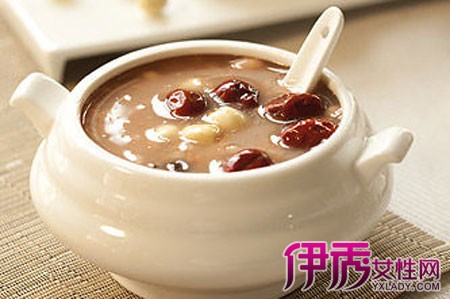 4、红枣花生粥 红枣15枚,带皮的花生仁50克,大米75克。 洗净后同放入锅中,加水适量,文火煮至烂熟,可每日早晚 服用。