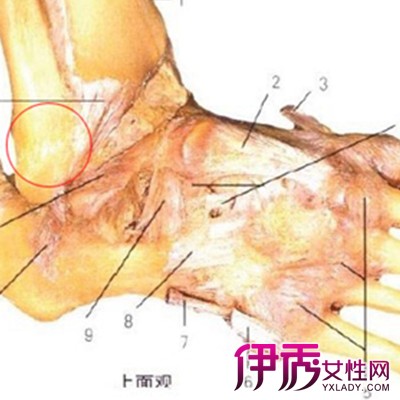 脚踝关节(ankle joint),由胫、腓骨下端的关节面与距骨滑车构成,故又名距骨小腿关节。胫骨的下关节面及内、外踝关节面共同形成的“冂”形的关节窝,容纳距骨滑车(关节头),由于滑车关节面前宽后窄,当足背屈时,较宽的前部进入窝内,关节稳定;但在跖屈时,如走下坡路时滑车较窄的后部进入窝内,踝关节松动且能作侧方运动,此时踝关节容易发生扭伤,其中以内翻损伤最多见,因为外踝比内踝长而低,可阻止距骨过度外翻。