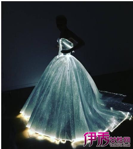 在以“科技”为主题的Met Gala上,blingbling的反光材质成为了不少女星的第一选择。Claire Danes却凭借着自己的礼服成为了这场星光云集盛会中最亮眼的星星。乍看之下如同灰姑娘的服饰,可是关了灯以后……就像是灰姑娘在变身一样美腻!