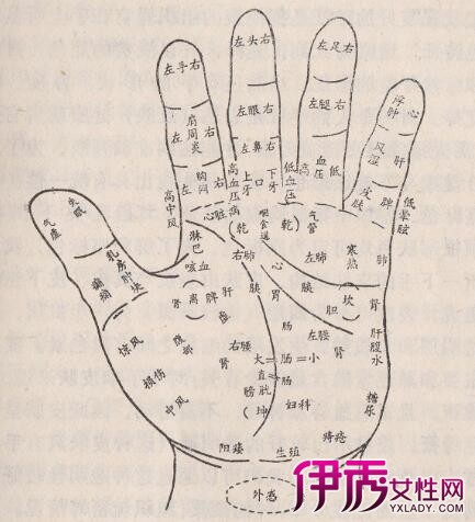 手部穴位图:胃痛和胃溃疡吃了太凉、腐败和不好消化的食物,或过饱,过饮时,第二天肚子发胀,恶心,同时出现胃痛。胃痛得严重时,甚至发生休克,这就是胃痉挛。当突发胃痛或胃痉挛时,为了止痛,最好采用穴位治疗。具体治疗方法:治胃痛最好的穴位是胃肠穴点,手心稍下方的胃肠穴,它与胃和肠有密切的关系。如按压刺激此穴,可以抑制胃肠功能。具有止痛的效果。,同时按压手背拇指根部稍靠下的落零五穴,也很有效。治疗胃溃疡的穴位:胃肠穴,手背的胸腹区,食指上的前头穴,中指的中魁穴,每天用香烟灸这些穴位7-14次,能抑制胃酸分泌。所以胃的情况会渐渐变好。按摩的穴位:胃肠穴、落零五、胸腹区、中魁、前头点。手部穴位图:痔疮俗话说"三个大人,一人痔"患痔疮的人之多,可想而知。究其原因,有人说是饮食习惯所致,也有人说是生活习惯引起等等。一般的情况下,静脉血管中有静脉瓣,可以防止血液返流。不知为何,只有肛门静脉没有瓣,造成血液返流,淤滞。血液长时期淤滞,这一部分便因淤血而鼓起。甚至破例出血,所以治疗痔疮的要点,应放在提高肛门括约肌的收缩能力上。以促进血运,防止静脉血液滞流。具体治疗方法:用香烟灸会阴穴,由于使肛门括约肌受到锻炼,提高了肌力,所以能很好地止住出血。每天早晚灸15--30次,一定要耐心仔细地灸,才能收效,除会阴穴外,手背上的合谷穴和手掌侧食指第一关节的大肠穴也是治疗痔疮的好穴位。用手指按压这两个穴,也会很快收效的。按摩的穴位:大肠、会阴点手部穴位图:恶心吃了腐败不洁的食物和没熟透的水果,或是因机体疲劳、精神紧张等原因引起的恶心和呕吐,不可避强止呕,能吐则应尽量吐出,此时,应用提高胃肠功能和促进消化吸收的穴位,这些穴位都在食指上。具体治疗方法:治疗穴位是指甲边上的商阳穴和第一关节的大肠穴,手法是深压缓揉,感到疼痛就行了。如若达不到此种程度,多花工夫揉搓大肠穴。按摩的穴位:肝穴(大肠、商阳、神门)