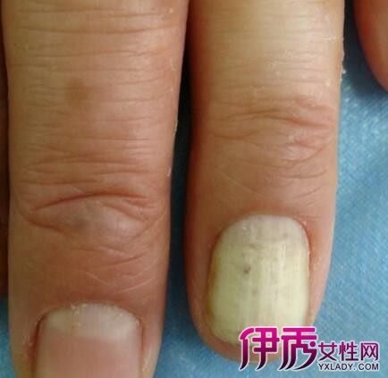 白甲症,是一种在小孩常见的指甲疾病,尤其白点的分布型态可分数种,单纯几点小点的一型在很多正常小孩都可看的见,不需治疗。本例的一型叫纹状白甲症,是许多白点排成横纹状的情形,较少见,一般认为是遗传因素或是外伤性,或体内因素产生。而另一型是整片变白的,在国外认为是艾滋病患得到甲癣感染时,容易变成的型态。其实以医师的经验发现,有一型称为表浅白甲癣的临床表现会与这个病表现很接近。但鉴别重点在本病白点有排列呈横纹的倾向,这在是甲癣不会有的。