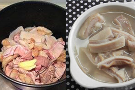 第二,莲子和猴头菇事先清洗干净,并浸泡上一段时间;新鲜的猪肚先拿到流动的水下冲洗片刻,先用白醋搓洗,后用面粉再搓一遍,下热水锅中焯洗即可。