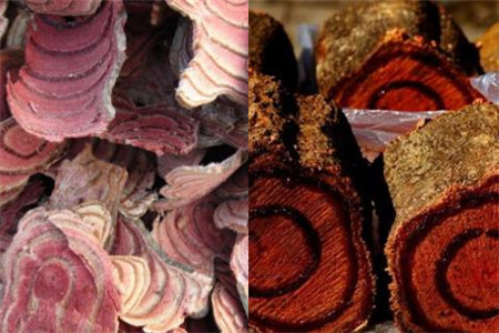 制成鸡血藤的原料有很多种,分别为三叶鸡血藤,白花油麻藤,香花岩豆藤和亮叶岩豆藤。三叶鸡血藤的叶子是椭圆形的,一般长有15厘米宽有8厘米,叶子顶端有点像心形。它的花有很多,排列成花序状,花冠是带色的蝶形状,它的顶部的种子只有一个,而白花油麻藤的种子有10多个,叶子一般是长圆状椭圆形的。