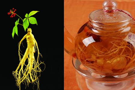 第三种是人参茶。人参是一种草本类的植物,要很多年才能长出一棵,历来就是一种滋补的圣品。它性温,味道甜中有一丝苦,可以补充人的元气,安神和益智,还能生津和止渴润肺。老年人很适合饮用这种茶,但要是有高血压就尽量别服用。