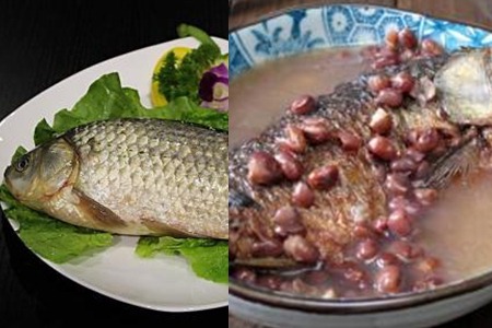 薏苡仁还可以搭配红豆煮鲫鱼汤,美颜又滋补。首先,提前将红豆和薏米清洗干净,用水浸泡。将鲫鱼清洗干净,用盐、姜片、少许酱油、生粉腌制30分钟。将腌制好的鱼和泡软的红豆、薏米放入电饭煲中,加入少许香油、盐、蒜片、姜片,熬煮至鱼肉变烂,鱼汤变浑浊即可。煮好后,主要是吃薏苡仁和红豆,因为它们将汤的精华都吸收了。