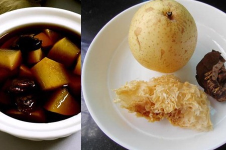 罗汉果的外壳与内仁都是可以吃的,与雪梨、银耳搭配,有清肝润肺的效果。罗汉果雪梨汤也很好做,首先,将雪梨洗净、去皮、切块备用。将银耳洗净,用温水泡开。罗汉果可以不用洗,但因为其甜度很高,连壳带仁取一小块就行。所有东西都准备好后,放入炖盅,加水,大火煮开后,加入适量冰糖,小火慢炖两个小时即可。