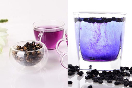 黑枸杞泡白开水会有花青素的释放,时间久了之后黑枸杞会变成蓝白的半透明色,逐渐变淡,这也是有利于辨认的原因之一。