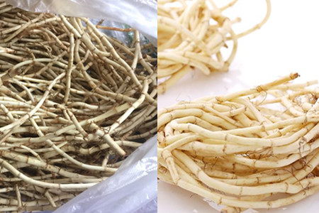 生长中的鱼腥草的叶子是心形的,叶子的径比较长,花朵生在顶端这个地方,是黄棕色的,夏季采摘根茎之后晒成一根根的长条,如果你将其揉碎可以闻出一股淡淡的鱼鳞腥味,这种味道不太好闻。