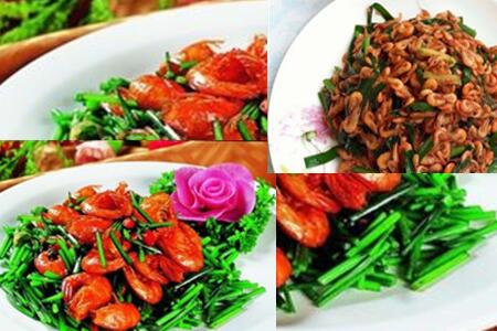 3、韭菜和虾一起,虾是海鲜,虾有丰富的营养物质,是很多人的喜爱,两者结合具有补肾的效果,对男性有很大的好处。
