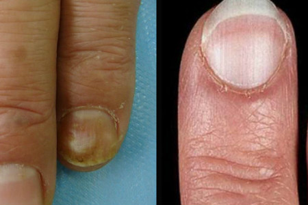 当人患有这样的病症时,最初的症状是指甲盖上会出现小面积的浑浊,一般是一些点状物,而且这些点状物的形状并不规则,而且点状物的数量也是不确定的。接下来在指甲中央出现了一弯月状的区域,而且指甲的边缘非常粗糙,外观很不美观。