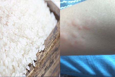 3、把手放在大米中反复地搓。就不痒了。