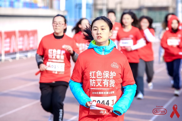 早在两周前,杜蕾斯已经通过线上公益海报的传递,引发了千人参与和转发。今天在中国石油大学的“公益接力跑”,则将2018年杜蕾斯“红色保护 防艾有我”战役推向高潮。