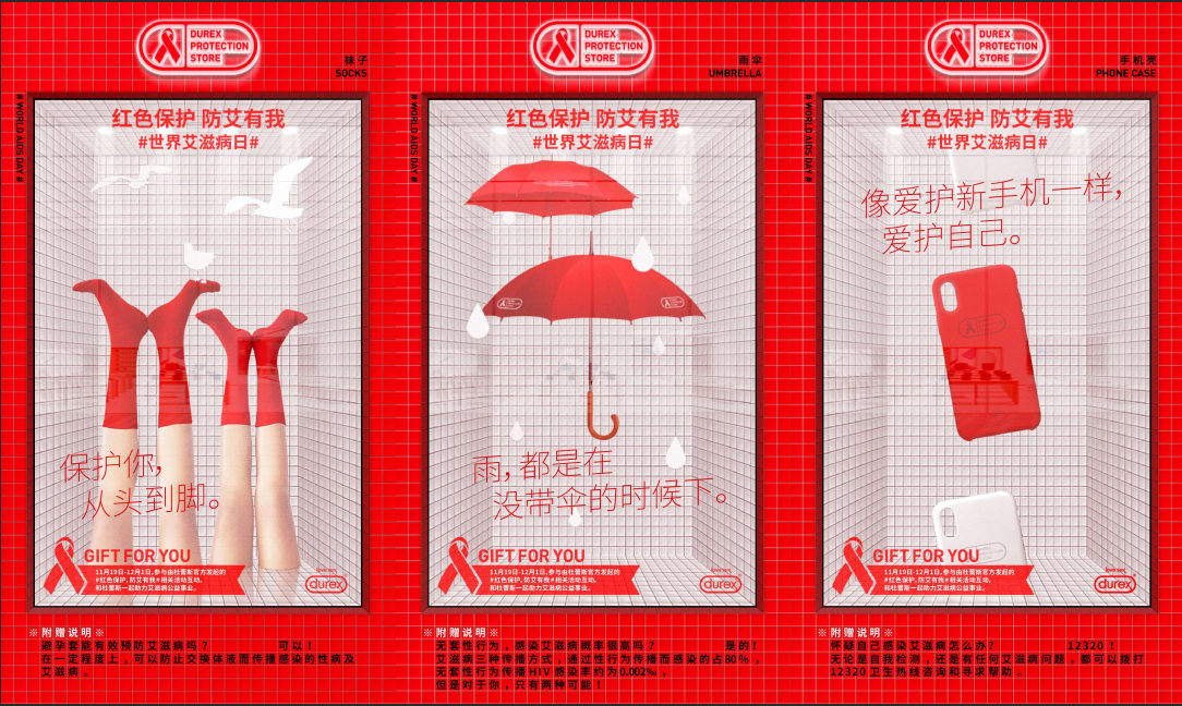 “接吻会传递艾滋病吗?”——基本不会! “怀疑自己传染艾滋病该怎么办?”——12320! “避孕套能有效预防艾滋病吗?”——可以! 第31个世界艾滋病日到来前夕,全球领先的两性品牌杜蕾斯,率先在社交媒体平台发起一场独特的红色传递。本次杜蕾斯延续品牌一直以来的创意风格,连续推出12张艾滋常识公益海报,鼓励年轻人以轻松的方式沟通自己对于艾滋病的困惑,并通过海报传递,扩散防艾公益理念。
