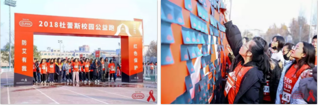 除了陆续收到这套红色周边产品的青年网友们,今年和杜蕾斯一起加入“红色保护 防艾有我”公益的,还有中国石油大学的上千位同学。在刚刚过去的世界艾滋病日的线下活动中,同学们争先恐后地撕下杜蕾斯“艾滋病问题墙”上的标签,答题闯关。