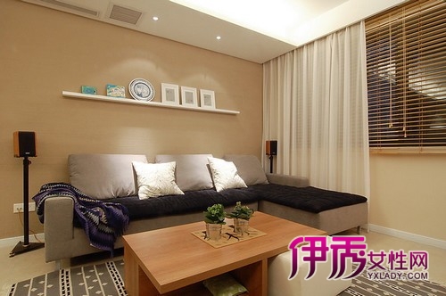 对驼色的墙壁颜色很满意,刷了三遍才达到理想的颜色,我们家没有一堵复杂的背景墙,沙发背景做了极为简单的拉丝效果,带着清清爽爽的凹凸效果就出炉了。小隔板原本没有在考虑中,设计师说背景过于平淡了,加一个搁板都会有不一样的效果,想着并不是很费事,也没有太多的费用就同意了,现在觉得确实有锦上添花的感觉。很喜欢这种低调但不简单,内敛并不张扬的感觉。
