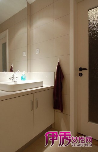 客卫的洗手台:紧挨着吧台,这个位置比较隐蔽,平时在客厅里活动,使用比较方便,尤其是每次吃饭前不必跑到厨房洗手。