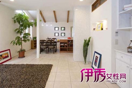 用深棕色的地毯取代沙发,既让人觉得独具创意,又使空间在视觉上变得宽敞起来。闲暇时,还可作为孩子的玩乐天地,增加了空间的实用度。选购几幅喜欢的壁画简单的摆放在墙边,方便欣赏又保证了墙体的完好无损。打造一个长形的小壁橱,摆上几张喜欢的照片,晚上点亮两盏蕴黄的小灯,浪漫无比。而作为房间内必不可少的绿色植物,装饰了房间的同时,又无形间对空间进行了区分。