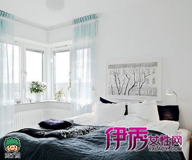 主卧的补氧秘诀主要取决于淡水蓝色的窗帘和床头植物图案壁画,在它们身上我们都可以寻到自然清新的属性。墙壁转角窗户的开设,不但打开了卧室的视角,也给婚房卧室带来了更多新鲜空气,与窗台的绿色小盆栽搭配,绿意盎然,令人心旷神怡~