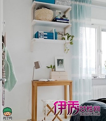 简易的家具搭配,成为了年轻夫妻家装革命中的流行趋势。比如这个简易的木制小书桌,它在保证了美观性的同时,小巧的身躯给卧室空间减压不少,而木制材料更是给家中带来了属于大自然的气味。三层简易收纳搁架,直观清晰的收纳方法是也是小户型较为适用的搭配守则。