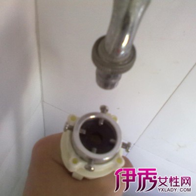 第二步:确认连接头里的白色塑料导套及黑色橡皮垫是否完好后(如果水龙头管径过粗,可去掉塑料导套),将连接头上的四颗螺钉拧松,并旋转上、下连接头,使之留有3-4个螺纹的间隙;
