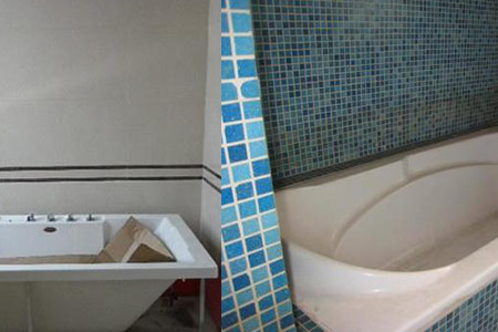 2、安装嵌入式的浴缸则需要小心一些。一般浴缸放好之后还要在四周围上矮墙,并用沙子压紧。不过,在安装的时候不能在浴缸底部放砖块,不然釉面会被损坏。