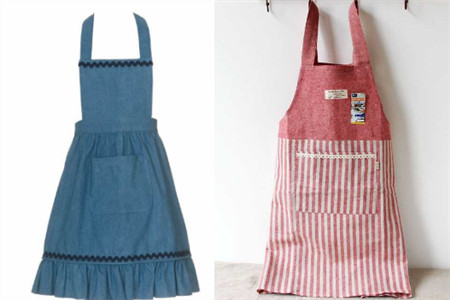 第一种是选择竖条纹的围裙,是直接系在腰上,长度要膝盖左右,这种围裙稍微和我们平常所用的有些区别,这种围裙给人的感觉相对专业些。一般来说,厨师也多会选择这种围裙,那么家居生活中,我们有需要选择这种吗?有的,因为这种围裙好看,也能突出腰围,能更好地给人美感。