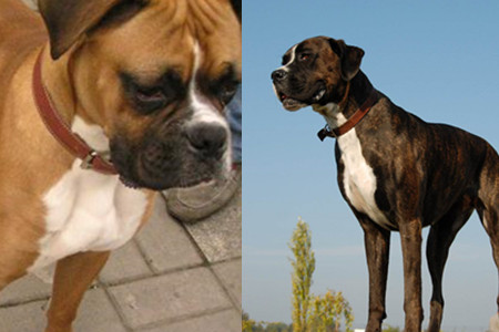 而拳师犬眼睛圆圆大大的,脸圆圆鼻头大大,更加可爱萌动。拳师犬通体棕色或者黄色,只在鼻子、肚子和脚爪是白色的。因此拳师犬给人感觉更加亲切、温和。而且拳师犬在体型上也比杜宾犬要胖一些,行动力也比杜宾犬差一点。但是拳师犬的爆发力较强,加上与猎物搏斗时表情比较狰狞,所以在战斗力上还要更胜一筹。