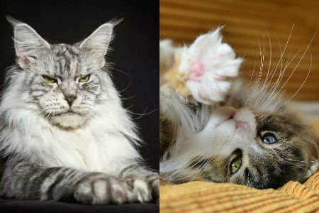 缅因猫非常亲近人类,有的极其黏人,盯自家铲屎官盯得很紧,恨不得除了吃饭睡觉外一直呆在人身边,简直就是狗性格的猫。但作为猫科动物之一,尤其还是曾经的工作猫,铲屎官们可不能因其超好的脾气就忽略了它的战斗力,曾经就有平时温和懒散的缅因猫,某日暴打别人家的金毛,把铲屎官吓得抱住自家的狗瑟瑟发抖的事情的。