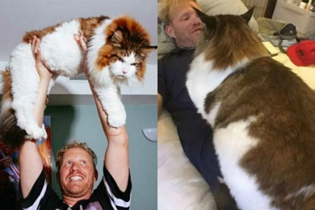 缅因猫普遍性情温和,极具威慑力的外形下是一个爱撒娇的软萌小可爱,喜欢被亲亲抱抱举高高,当然这个举高高活动一般局限于其未成年时期,缅因猫成年后的体重足够让人锻炼出发达的手臂肌肉。上图中被铲屎官高高举起的,如狮子般威严的猫,可以用《Circle Of Life》做BGM配合观看了。