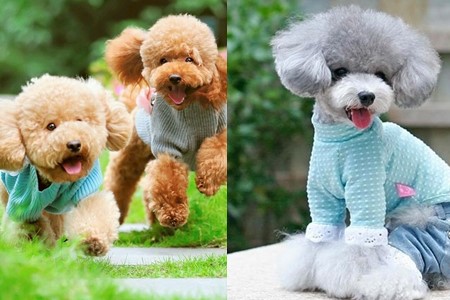 建议大家在帮狗狗买衣服前先了解一下狗狗的胸围,颈围和身长。衣服的面料尽量挑一些舒适型的,不买套头装,因为不太好穿。另外要注意刚把毛剃完的狗狗一定要穿衣服进行保暖和避免阳光直接的照射。
