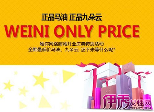 韩国最低价系列商品促销活动,购买达到一定的金额就送韩国的皮肤管理免费使用券的开业推广活动,和其他多种促销活动。