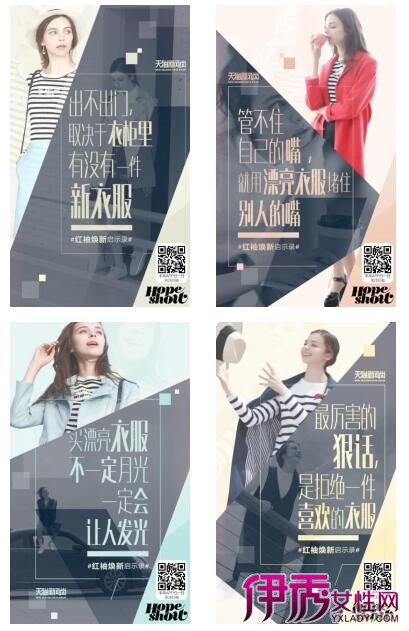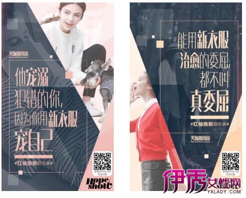 紧随H5的是以“红袖焕新启示录”为主题的系列海报,将小女人换季时节普遍患有的“爱吃怕胖”、“易受委屈”、“公主病”、“嘴硬心软”等通病,通过穿新衣的时髦方法治愈。红袖(HOPESHOW IT GIRL)用如此俏皮又新颖的方式,直面小女人的心事,几乎一瞬间就赢得了万千受众的喜爱!