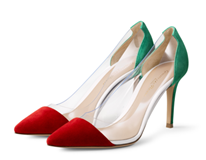 GIANVITO ROSSI Plexi双色麂皮拼接PVC尖头高跟鞋(590欧元)