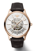 安普里奥阿玛尼Meccanico雅爵镂空玫瑰金皮质表带男士腕表(港币4,500元)