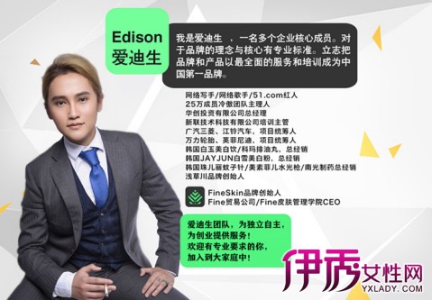 我是爱迪生 ,一名多个企业核心成员。对于品牌的理念与核心有专业标准。立志把品牌和产品以最全面的服务和培训成为中国第一品牌。