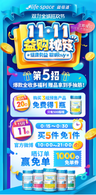 即日起,关注Life-Space益倍适益生菌官方平台,参与活动,就有机会赢取我们为这次全民狂欢购物节特别准备的专属优惠券!还有机会得到全家有”益”大礼包哦~