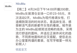 其实,在如今去中心化的时代,服装店主或许并不再需要通过这种线下聚会的方式来抓潜,如今的线上服装店主通过自媒体、微信社群,通过预告、预售来避免囤货,了解新品的顾客反响。从上面的故事中我们可以看到,上新八折的机制是个很明智的做法,既满足了第一批客人买到的优越感,同时限时折扣并不会降低商品的价值,反而体现了店主的诚意。
