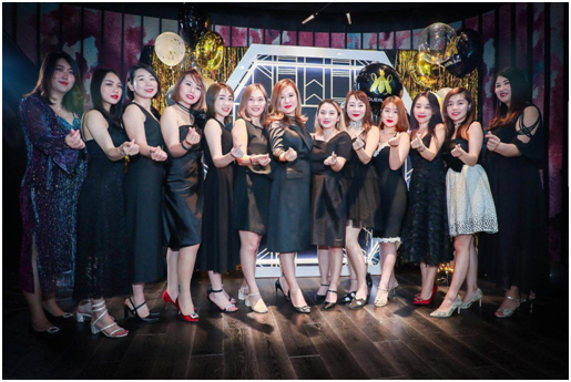 卡枚连创始人范玥婷与法国娇兰负责人翟贇同韩钰萧女士合影